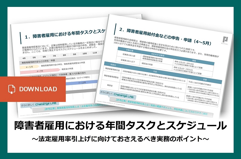 すでに法定雇用率を達成している企業においても、2024年4月2.5%、2026年7月2.7%に向けた雇用推進が引き続き必要になり、まだ法定雇用率が達成できていない・障害者雇用の推進の手がかりがつかめていない企業においては、自社の状況把握・課題の洗い出しからはじめても良いかもしれません。