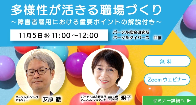 パーソル総研共催 法人企業向け障害者雇用セミナー 11月5日(水)開催