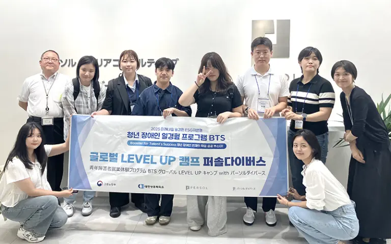 パーソルダイバースは2025年9月9日から11日までの3日間、韓国で人材サービス事業を展開するパーソルコリアと連携し、韓国の障害のある学生を対象とした就業体験支援プログラム「BTSグローバル LEVEL UP キャンプ with パーソルダイバース」を実施しました。本プログラムは、障害のある若者が自己理解を深め、多様なキャリアやはたらき方を学ぶ機会を提供するものです。